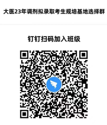 所有相关拟录取考生须于4月20日21:00时前,实名加入“大医23年调剂拟录取考生规培基地选择群”,群二维码附后。进群后添加姓名为“专业名称或研究方向名称(即不区分研究方向的直接填写专业名称,有研究方向的直接填写研究方向名称)+名次+姓名”。考生本人的专业名称、研究方向及名次以网站公示的拟录取名单为准。例如:“内科学+1+张XX”。